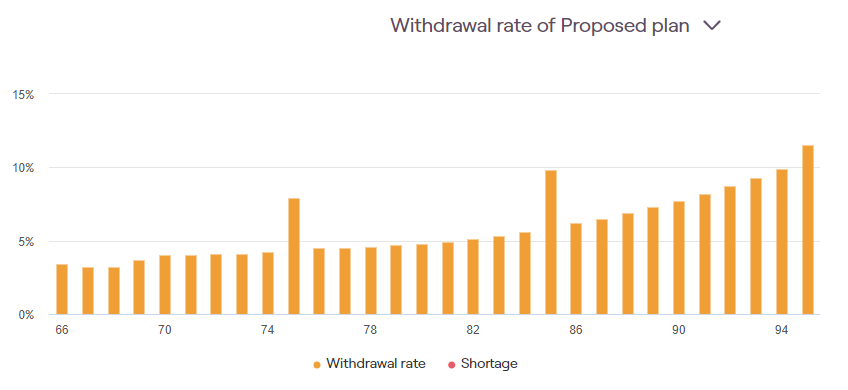 For example, here’s one of my client’s estimated percentage withdrawal rates over time: